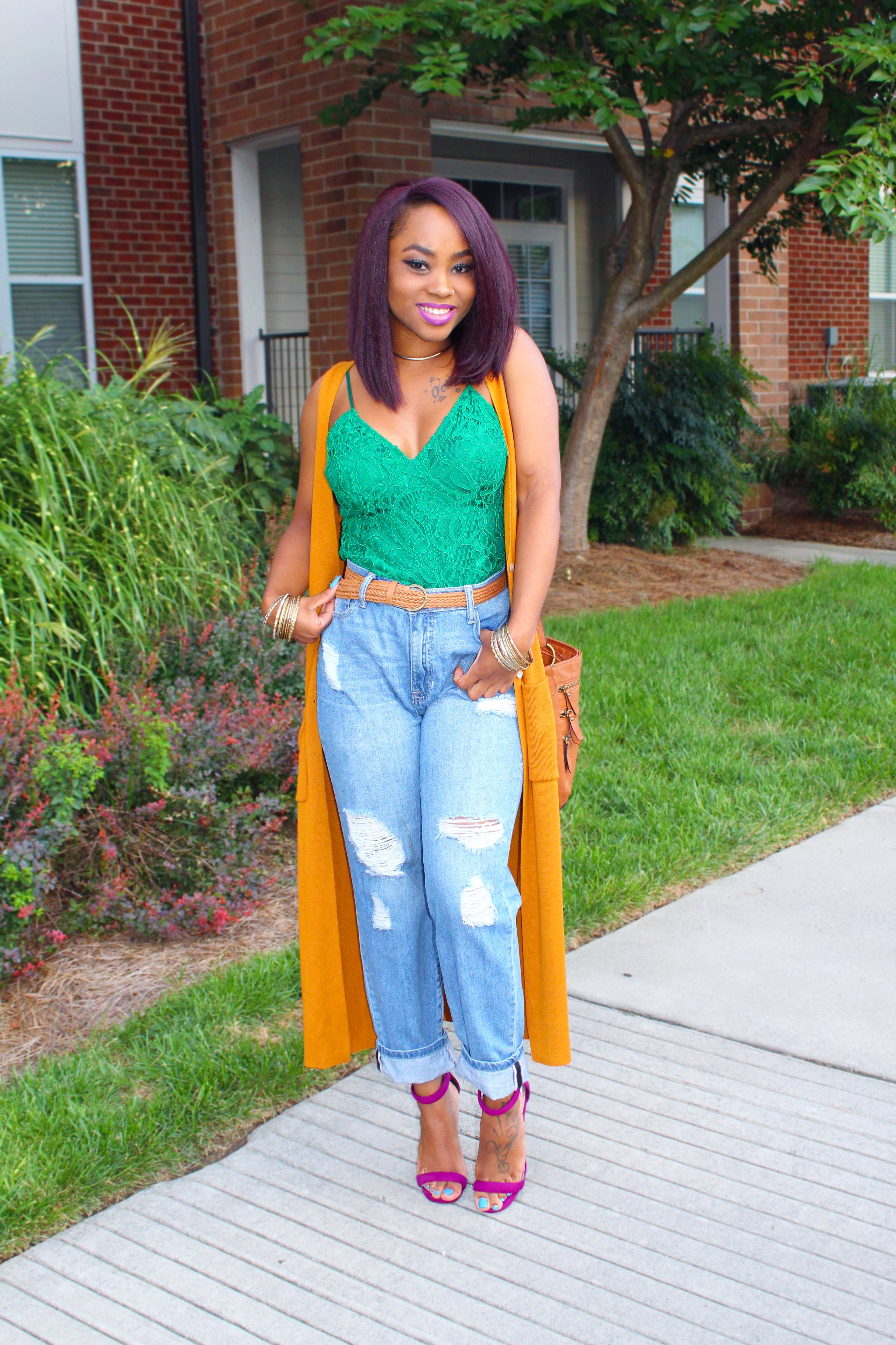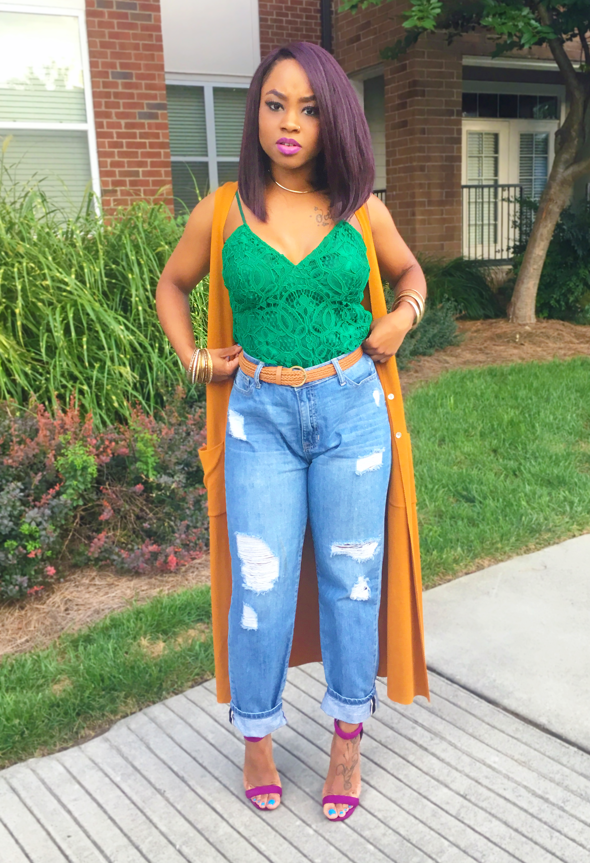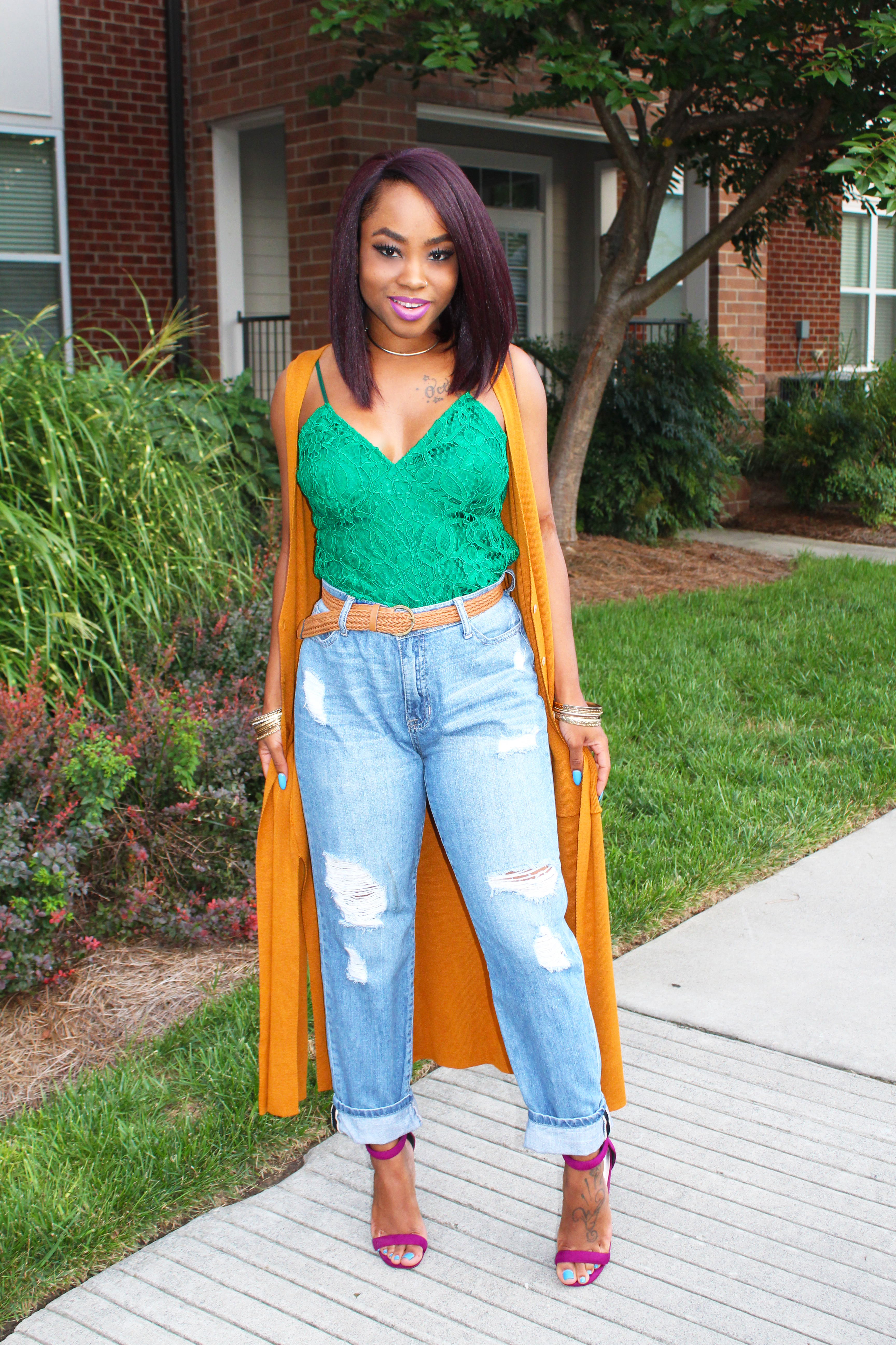 So this week I went to a fashion blog launch event (loved it) and I decided I wanted to wear my boyfriend jeans which I ALWAYS forget to wear. Y’all…I lost so much weight since the last time I wore them (maybe 2years ago). There was SO MUCH room around the waist???? but I still wasn’t willing to give up these jeans because of that. I put on this pretty-colored emerald top (Target SALE item – $7), tucked it in and added a belt.