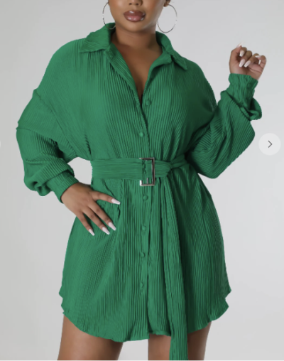 The green in this is for sure a BOLD pleated button-down statement piece that you can rock with your flyest boots! SLAY away in this flowy belted look!